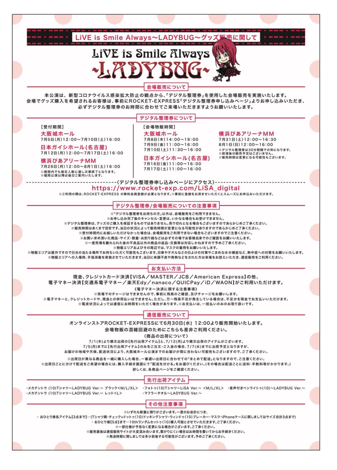 Live Is Smile Always Ladybug グッズ発表 会場販売 通信販売のお知らせ Lisa ソニーミュージックオフィシャルサイト