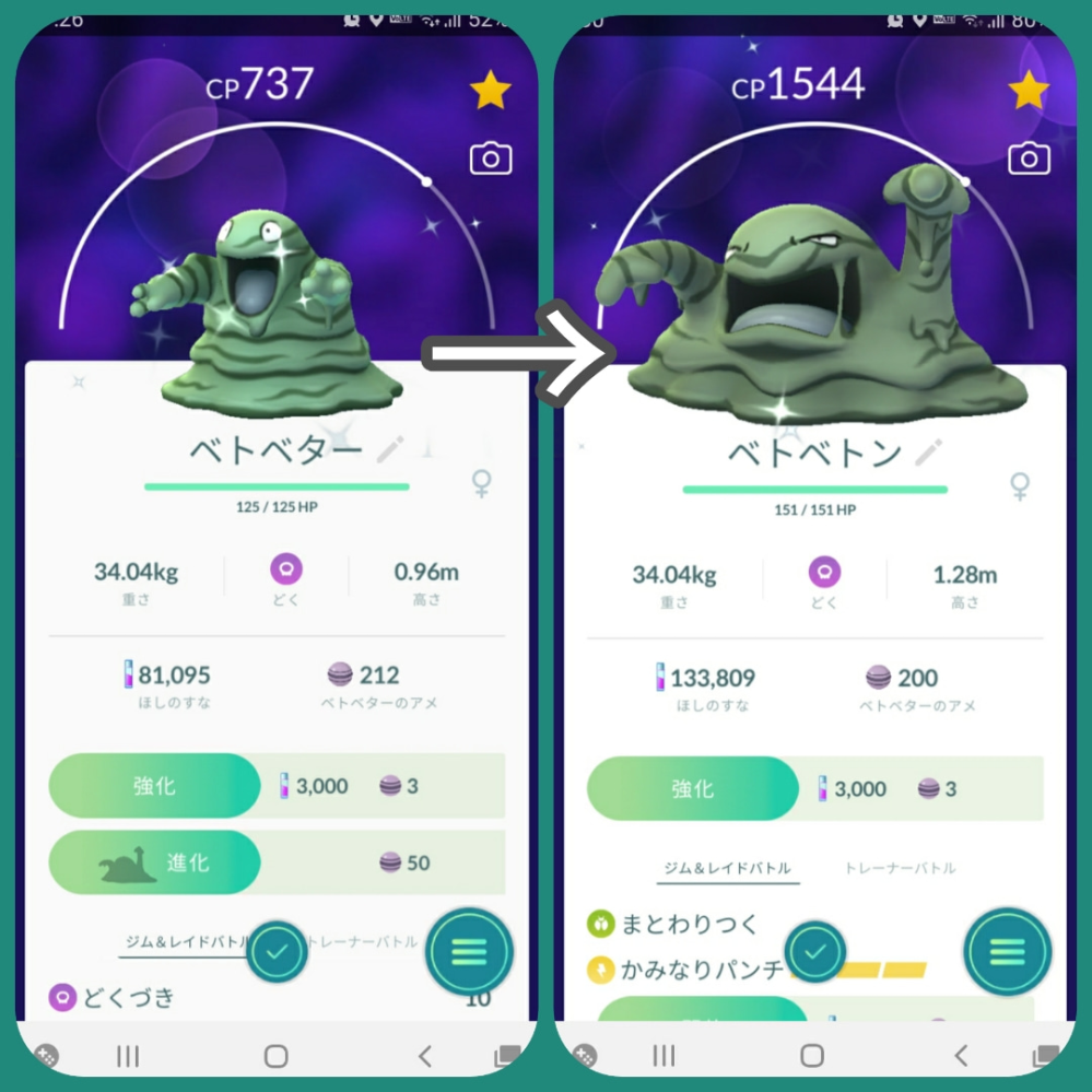 アローラベトベトン 色違い- ピカブイ (ポケモンレッツゴー)における、アローラベトベトンの種族値や覚える技を掲載しています。 出現場所 (生息地)やタイプ相性・弱点まで完全網羅していますので、アローラベ出現時期:19年7月4日「ポケモンGO3周年記念」イベント~ 0 ベトベトン 緑色のベトベターを進化させると、 緑色の
